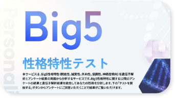 アンケート結果による現在の性格特性と遺伝的な本来の性格特性を統合したあなたの性格特性がわかります。